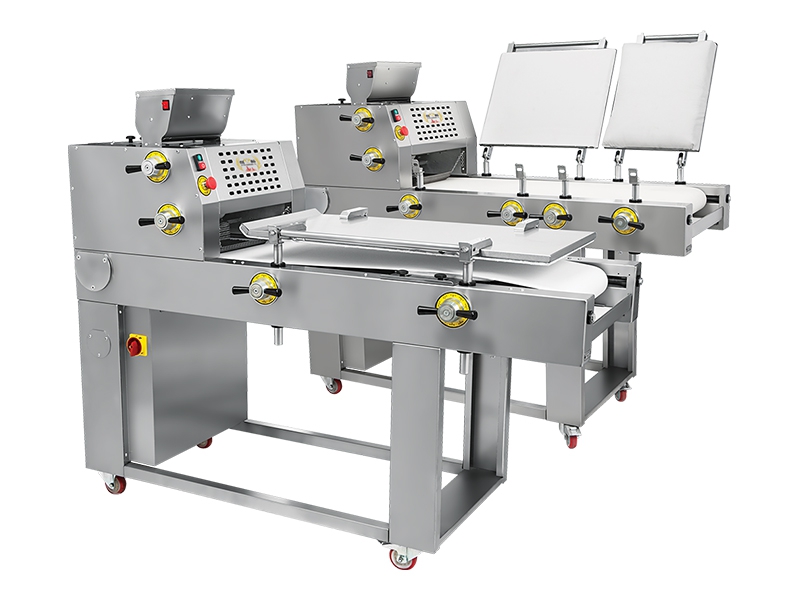 The long forming machine is capable of shaping all kinds of bread dough, including pan bread and small baguettes. There are four printing and shaping rollers on the machine. Plastic stripping units have been added to the rollers. The printing table can be adjusted. At the same time, it can be easily opened backwards where it is for cleaning. Rollers made of special material prevent dough sticking. With its solid construction, it provides long-term durability with minimum technical maintenance. Precise and simple adjustment of parts such as centering blades, rollers, stand is available. The braked wheels make the machine easy to maneuver. Easy cleaning and maintenance. All mobile covers are equipped with electrical safety switches. Different pressure plates are available. The maximum forming length is 420 mm. Dough processing capacity is 2,800 pieces per hour. Roller and platen adjustment levers can also be mounted in the opposite direction of their existing area.